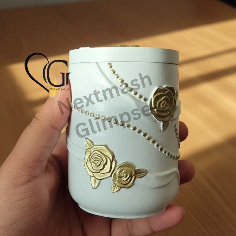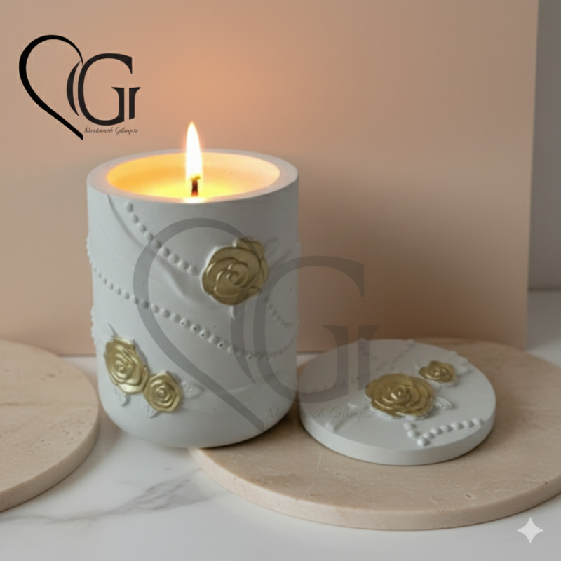 is a premium candle container crafted exclusively for candle makers who want their products to feel luxurious, artistic, and long-lasting. Designed with elegant floral detailing and a perfectly balanced cylindrical shape, this jar is first time launched in India, making it a unique addition to any high-end candle collection.